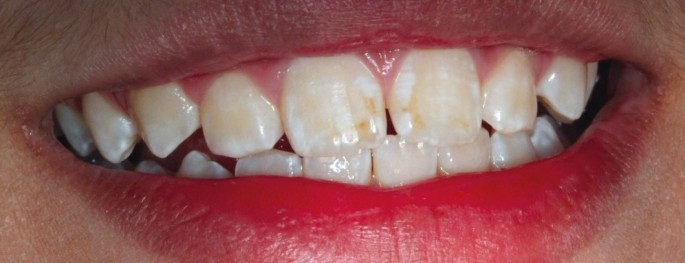 Além das manchas, os dentes podem apresentar uma descoloração geral, parecendo mais opacos ou translúcidos em comparação aos dentes normais.